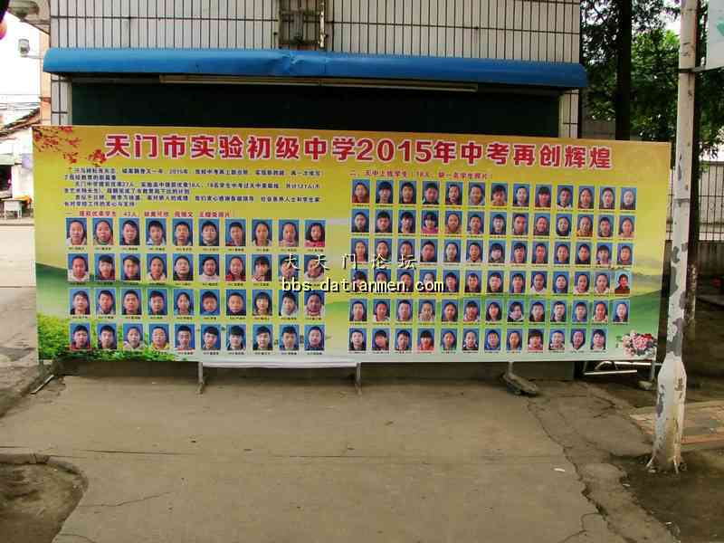 天门实验城西]初中今年中考再传捷报 今天上午路过天门实验初中面前时,看见很多家长与学生都聚集在那里,出于好奇探其终果,原来是在看中考红榜。,羊年中考传捷报,实验初中创辉煌!2015年天门实验初中今年中考过天中线78名学生,加上提前录取27人;实验高中16人;共计121人的可喜成绩,这是实验初中全校领导与教职工辛勤耕耘三载,收获硕果满园。向全市人民交了一份满意答卷! 请分享图片: