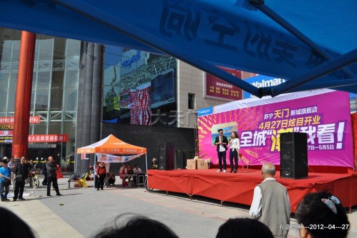 苏宁开业了! 今天是天门苏宁电器开业的大喜之日,为了让大天门网友第一时间看到现场片子,很早我带单反相机,驱车来到天门CBD,拍摄卖场外的一些情况后,我直奔苏宁的卖场,在负一楼正聚精会神拍摄人流量的时候,被一伙穿苏宁制服的人围着,其中一个身高1.80的小伙子夺走我的单反相机,口口声声要删去我的片子,要看我的工作证,并将相机交给另一名小伙子。我向他们解释,我是本地网络媒体的,拍片是为了宣传天门,宣传天门CBD,宣传天门苏宁【他们把我当成了同行的间谍】。他们说:我们不需要宣传!