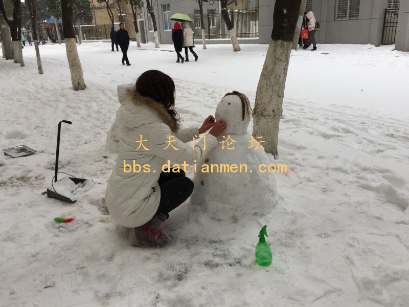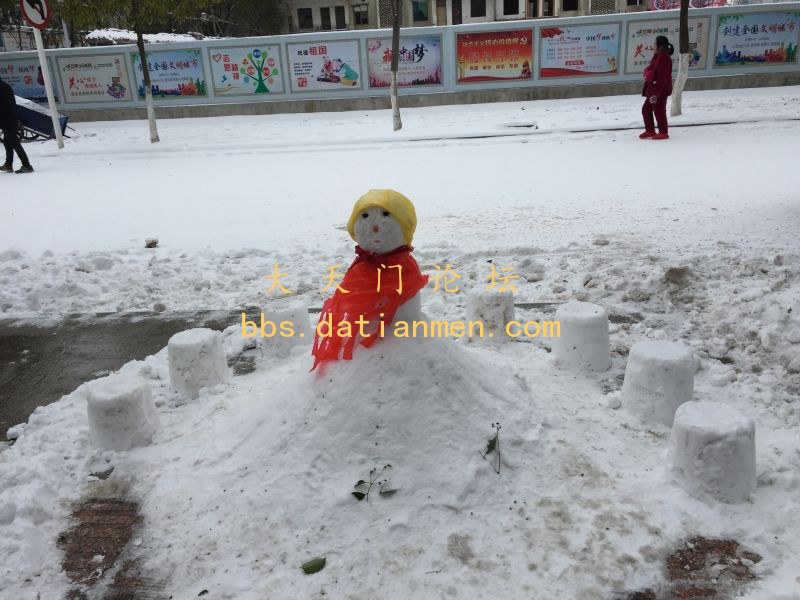 1月26日中午,竟陵城区不少市民和小孩玩起了“堆雪人”的游戏。请看组图——