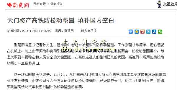 这一现状即将得到改变。11月7日,从广东来天门参加天商大会的深圳森丰真空镀膜有限公司董事长汪友林透露,由该公司投入千万元研发的防松动垫圈项目已经落户天门,明年11月即可投产,将结束我国高铁及汽车长期对国外防松动垫圈的依赖。