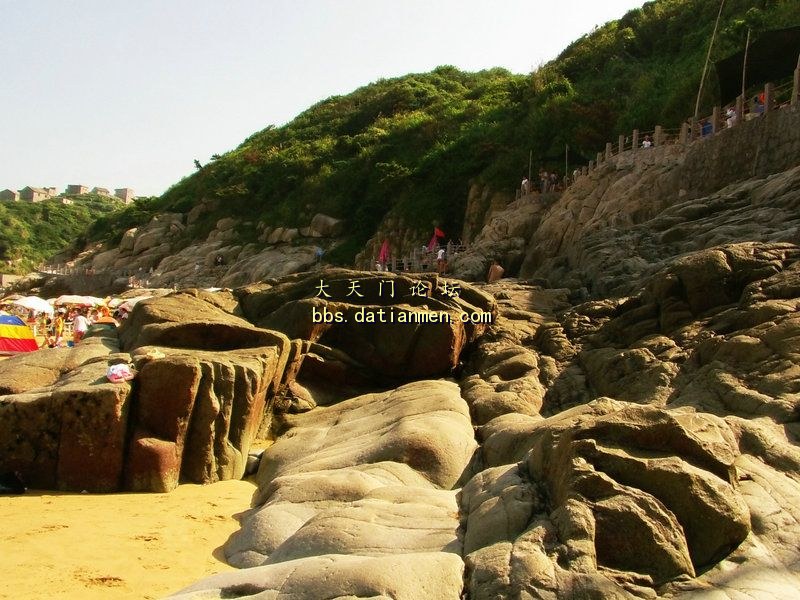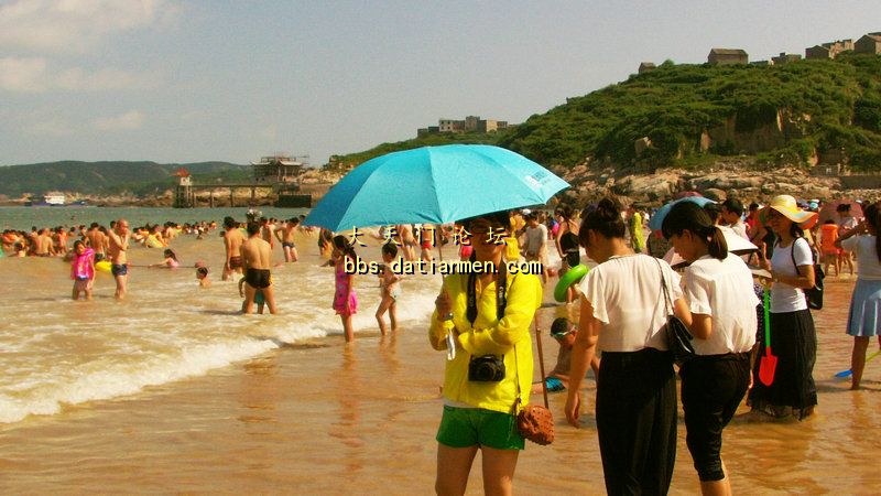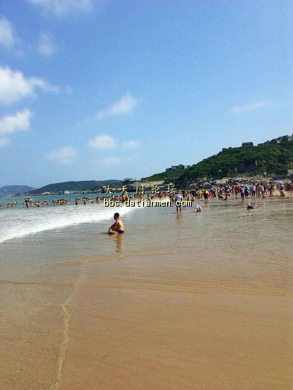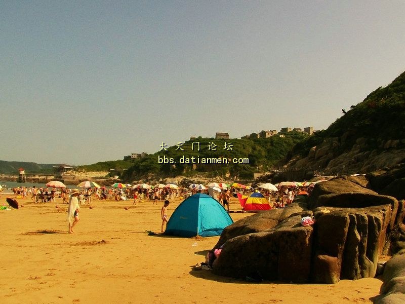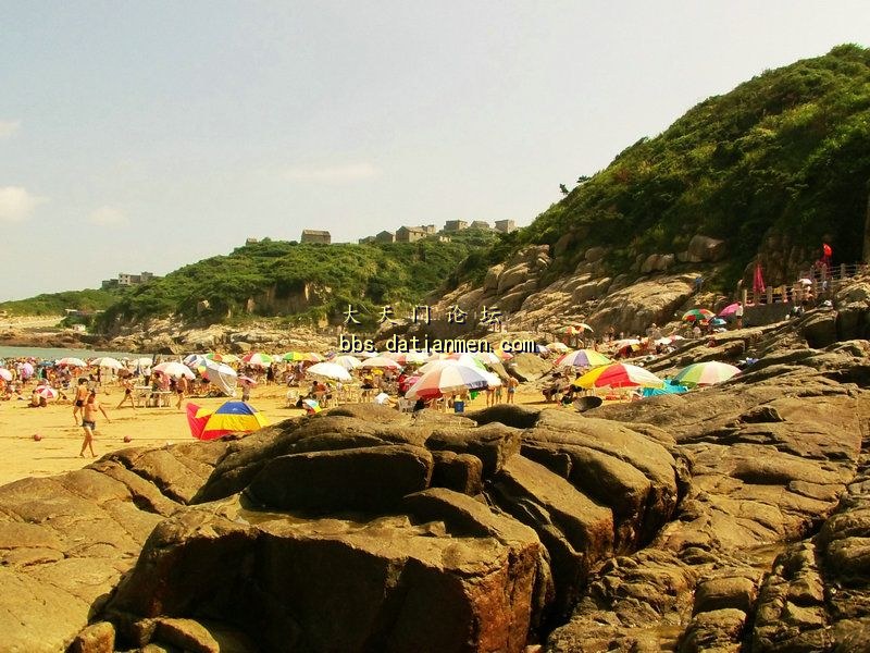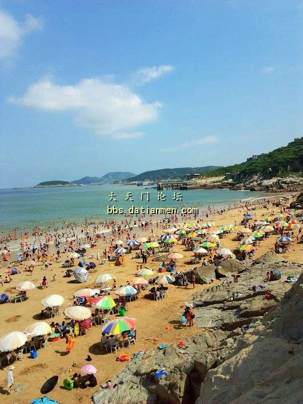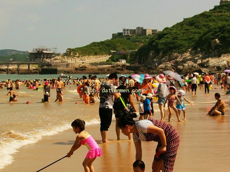 沙滩上纳凉的人流如织,特别是那沙滩上五颜六色,造型各异的帐蓬与太阳伞,给沙滩添上绚丽的一笔。 游人们漫步在海边,任凭海浪亲吻着他的小脚丫;到了午下,海面上波光粼粼,大人小孩男男女女们穿着奇装异色的游泳衣及五颜六色的游泳圈在波涛中冲浪,随着海浪的起伏,享受着这大自然节拍,全身心地浸在大海里。海浪拍打着礁石,发出悦耳的声响,正好给爱唱歌的海鸥伴奏,给正在冲浪的人们来了个绝佳的伴舞! 尽享海边拾贝的乐趣: 退潮时,游人们漫步在礁石上,还有好多拿着工具的人,在挖石缝里的牡蛎与寻找拾贝的乐趣。礁石上与沙滩边缘,四处散落的五彩缤纷的贝壳就像给金色的沙滩衣服缀上光彩夺目的宝石。