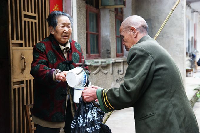 清老人都会在吃饭的时候等着邱照金路过。扬云清老人的善举