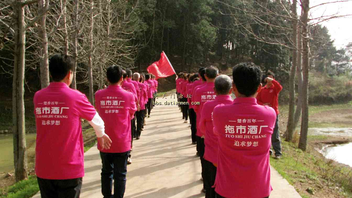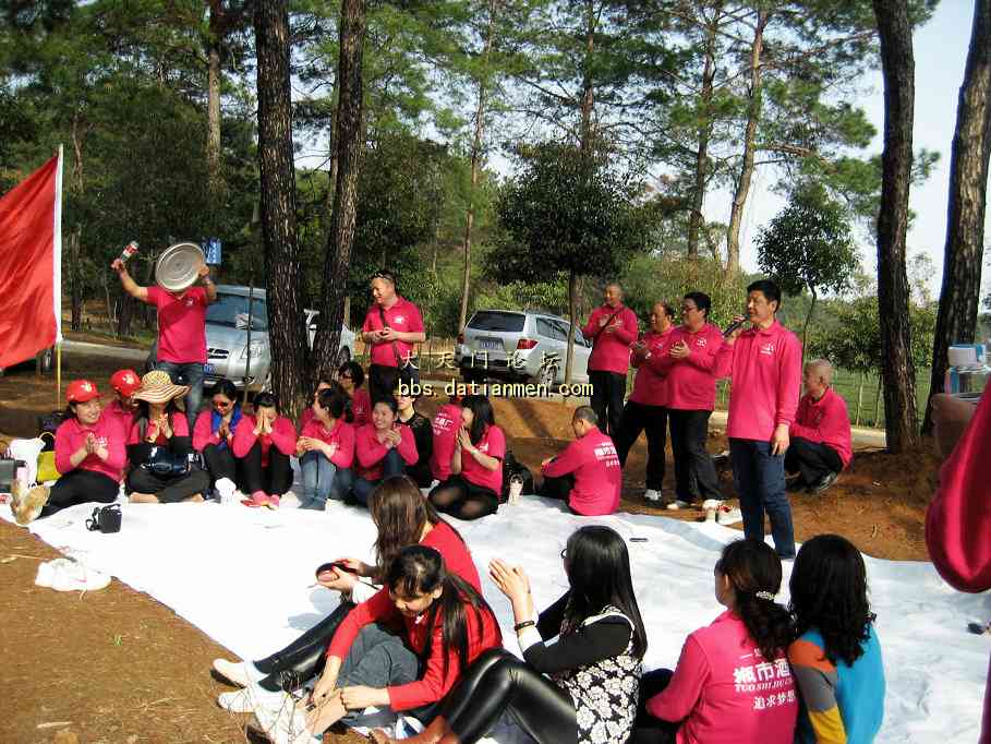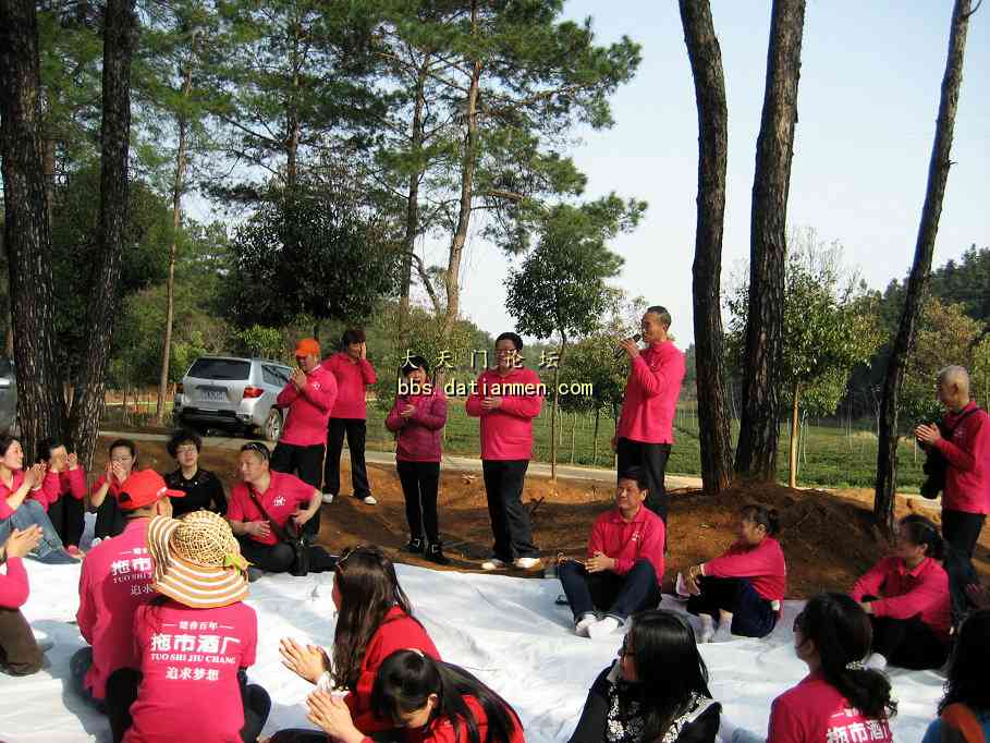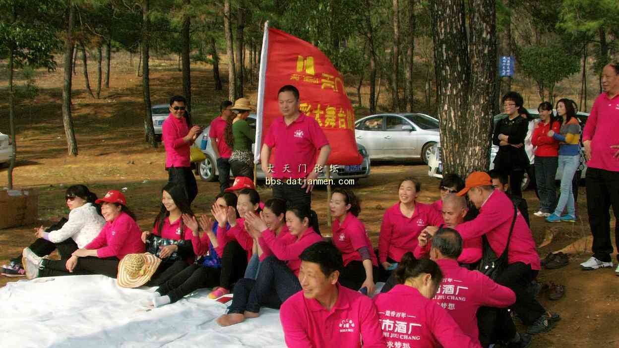 寻找春天.快乐郊游---CBD精彩大舞台春游纪实 阳春三月,柳丝吐绿,桃花鲜艳,菜花金黄。2015年3月21日,精彩大舞台的台友们统-身穿拖市酒厂赞助的红色台服,上午9:0正从CBD大舞台出发,此次春游的目的是赏桃花美景.闻菜花芬芳! 地址:“皂市的桃花园”, 第一站是陆羽故里,第二站是桃园,第三站是长寿山与茶园、第四站是品尝皂市的农家菜,这次活动参加的人数总共有54人,共有11辆车,费用为AA制,在行进过程中台友们井然有序。全程一切行动听从唐革新同志与陈淑芬女士的总指挥,一路上春风拂面,台友们乐在其中,嬉闹声源源不断。到达目的地后俊哥靓妹们换上了各自准备的便装 ,特别是女士们拿出了多种道具,个个奇装惊艳秀出女人的独特的气质与品味。 游人们漫步在丘陵山坡,遍野的桃花姹紫嫣红,颜色亮丽, 耀眼夺目,远远望去,似乎像天上落下的一大片朝霞,时而散发出来的阵阵清香,那么沁人心脾。钻入你的鼻孔,扑进你的心里,馋得你大口大口地吸气。还有那坡下的油菜花,金黄夺目,弥漫着幽香,无边无际的金黄,温暖醉人的阳光,柳绿与长青的松桕,构成了人间的世外桃花源, 犹如到了人间仙境。 转眼已到中午, 台友们席地而坐进行了野炊烧烤美味午餐,饭后进行了登龙尾山与参观茶园及春游联欢会,首先进行的是佳木斯健身操表演,随后是诗歌朗诵,舞蹈,清唱讲故事等活动,有人拿起锅盖充当锣鼓, 引得大家哈哈大笑,同志们个个热情高涨 掌声与呐喊声不断,接着汪义雄同志即兴随口念出了: “阳春三月风光好,龙尾山下彩旗飘,舞台精英齐聚集,欢声笑语歌不断”等诗句。台友们争先恐后玩得不亦乐乎, 大家玩的非常开心! 游戏结束后,天色巳晚,又到了吃晚饭的时间,一些年长者们主动将活动场内的垃圾清集装袋驱车赶往皂市,品尝皂市的特色野菜, 畅饮拖市美酒,酒友们划拳助兴的口令声一浪高过一浪,热闹非凡! 此次春游活动增加了大家的集体荣誉感,丰富了广大台友们的业余生活,使大家在繁杂的工作之余,亲密接触大自然,欣赏春天美景,强健自身体魄,拓展视野;领略大自然风光,呼吸新鲜的空气,于大自然亲密接触,感受到了春天的美景,欣赏了家乡的美景,感受到新区新农村美丽变化,不仅可以陶冶情操,且放松了平日工作中紧张的神经,收获颇丰。 如今私驾游也成了一种时尚,他们成群结队地来到乡下观赏盛开的桃花与油菜花,赏着美景,其乐融融,令人陶醉,流连忘返。虽然她们鼻尖上沾满了花粉,而笑容钻进了数码照相机,留下了永恒的记忆!大家感觉从乡下回来,那红艳艳与黄橙橙的画面,仍然留在我的脑海里,那香喷喷的味道,似乎还在鼻尖萦绕。