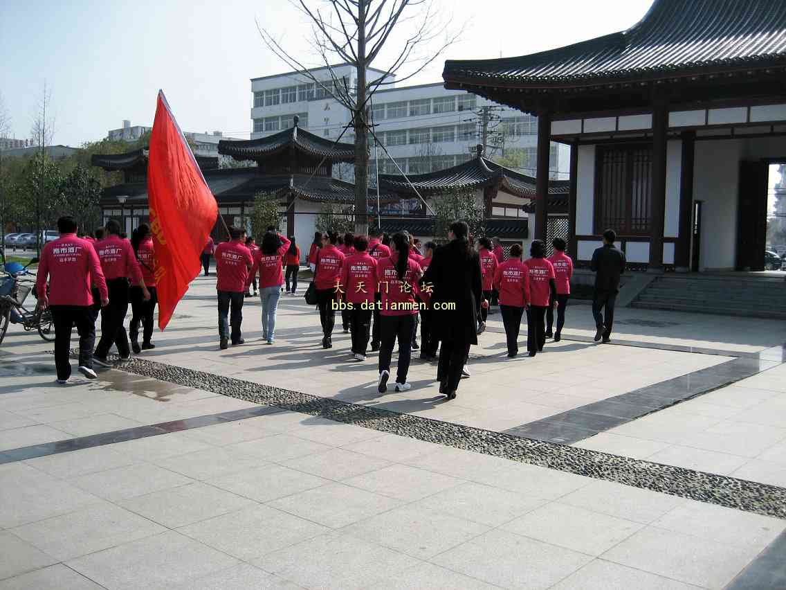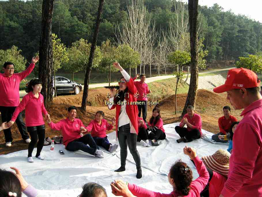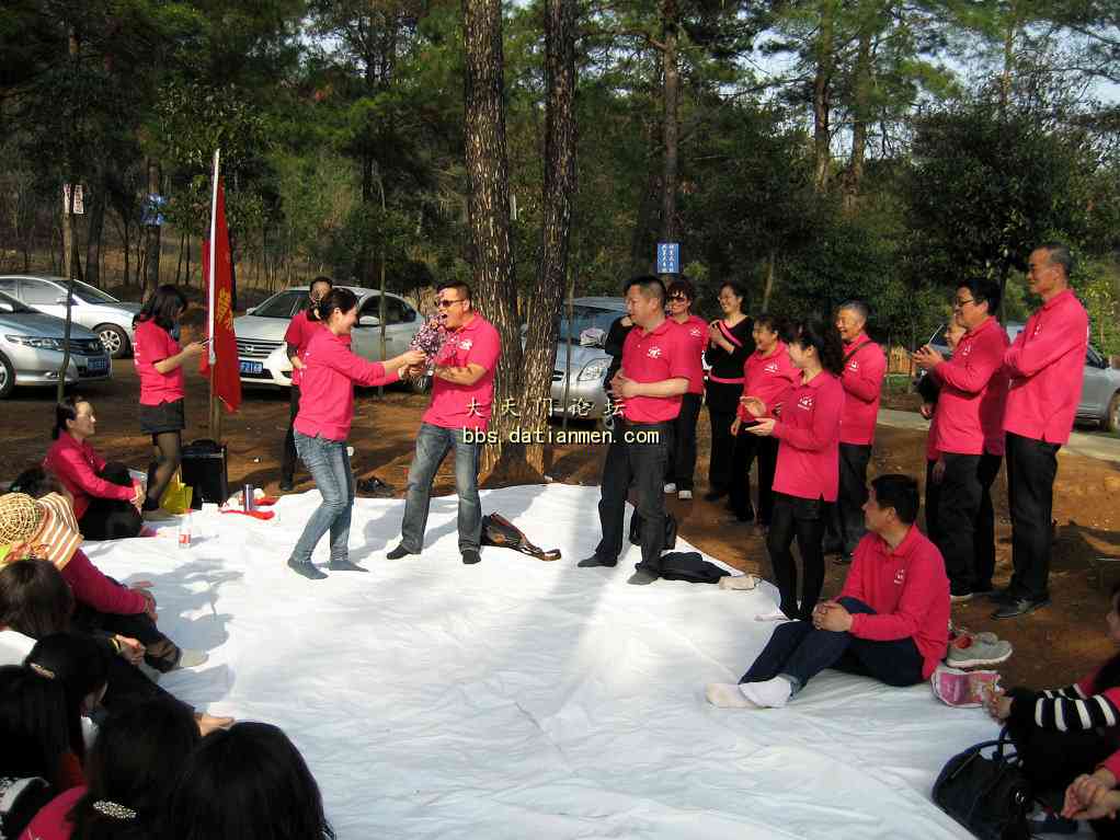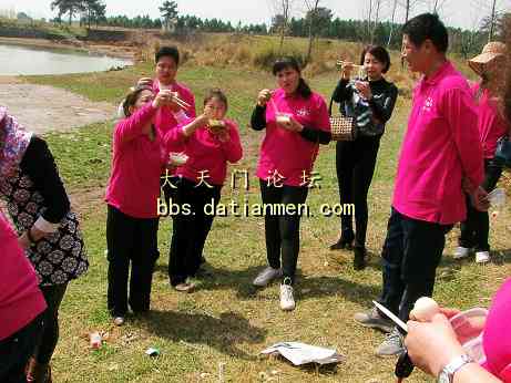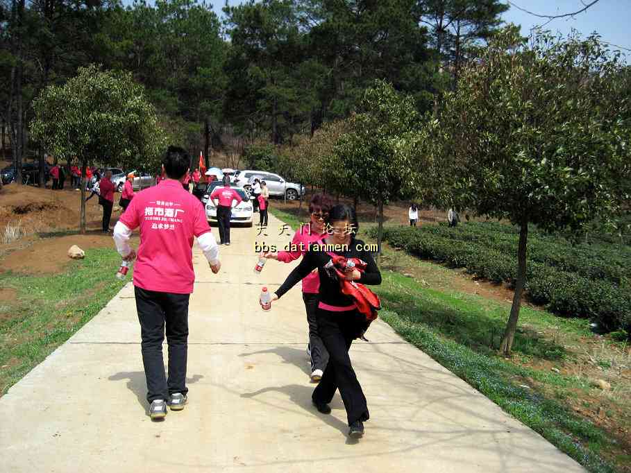寻找春天.快乐郊游---CBD精彩大舞台春游纪实 阳春三月,柳丝吐绿,桃花鲜艳,菜花金黄。2015年3月21日,精彩大舞台的台友们统-身穿拖市酒厂赞助的红色台服,上午9:0正从CBD大舞台出发,此次春游的目的是赏桃花美景.闻菜花芬芳! 地址:“皂市的桃花园”, 第一站是陆羽故里,第二站是桃园,第三站是长寿山与茶园、第四站是品尝皂市的农家菜,这次活动参加的人数总共有54人,共有11辆车,费用为AA制,在行进过程中台友们井然有序。全程一切行动听从唐革新同志与陈淑芬女士的总指挥,一路上春风拂面,台友们乐在其中,嬉闹声源源不断。到达目的地后俊哥靓妹们换上了各自准备的便装 ,特别是女士们拿出了多种道具,个个奇装惊艳秀出女人的独特的气质与品味。 游人们漫步在丘陵山坡,遍野的桃花姹紫嫣红,颜色亮丽, 耀眼夺目,远远望去,似乎像天上落下的一大片朝霞,时而散发出来的阵阵清香,那么沁人心脾。钻入你的鼻孔,扑进你的心里,馋得你大口大口地吸气。还有那坡下的油菜花,金黄夺目,弥漫着幽香,无边无际的金黄,温暖醉人的阳光,柳绿与长青的松桕,构成了人间的世外桃花源, 犹如到了人间仙境。 转眼已到中午, 台友们席地而坐进行了野炊烧烤美味午餐,饭后进行了登龙尾山与参观茶园及春游联欢会,首先进行的是佳木斯健身操表演,随后是诗歌朗诵,舞蹈,清唱讲故事等活动,有人拿起锅盖充当锣鼓, 引得大家哈哈大笑,同志们个个热情高涨 掌声与呐喊声不断,接着汪义雄同志即兴随口念出了: “阳春三月风光好,龙尾山下彩旗飘,舞台精英齐聚集,欢声笑语歌不断”等诗句。台友们争先恐后玩得不亦乐乎, 大家玩的非常开心! 游戏结束后,天色巳晚,又到了吃晚饭的时间,一些年长者们主动将活动场内的垃圾清集装袋驱车赶往皂市,品尝皂市的特色野菜, 畅饮拖市美酒,酒友们划拳助兴的口令声一浪高过一浪,热闹非凡! 此次春游活动增加了大家的集体荣誉感,丰富了广大台友们的业余生活,使大家在繁杂的工作之余,亲密接触大自然,欣赏春天美景,强健自身体魄,拓展视野;领略大自然风光,呼吸新鲜的空气,于大自然亲密接触,感受到了春天的美景,欣赏了家乡的美景,感受到新区新农村美丽变化,不仅可以陶冶情操,且放松了平日工作中紧张的神经,收获颇丰。 如今私驾游也成了一种时尚,他们成群结队地来到乡下观赏盛开的桃花与油菜花,赏着美景,其乐融融,令人陶醉,流连忘返。虽然她们鼻尖上沾满了花粉,而笑容钻进了数码照相机,留下了永恒的记忆!大家感觉从乡下回来,那红艳艳与黄橙橙的画面,仍然留在我的脑海里,那香喷喷的味道,似乎还在鼻尖萦绕。