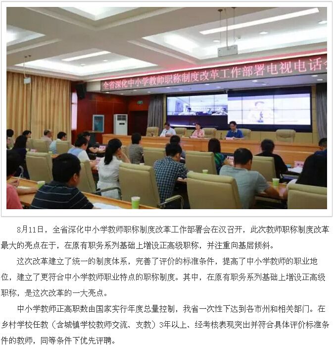 湖北省中小学教师职称制度改革全面启动