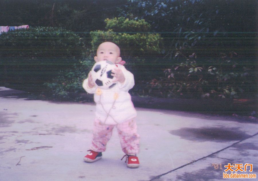 多年前,我觉得我还是个孩子。如今,女儿的个子已快及我般高,不得不叹岁月催人老,青春已流逝。回首过去,从辛苦的十月怀胎,到孩子的呱呱坠地,有着艰辛承受过痛苦。看着孩子一天天长大,她的喜怒哀乐,牵扯着父母的心,而孩子给予我们的也有无尽的欢喜。都说女大十八变,确实如此......孩子小时候还算得可爱,长得像她老爸,只是越大越像我了,不用看,就这知道这孩子不是桥底下捡的了:lol 满月的照片未扫描,只有从半岁开始的了。半岁 11个月的光头足球娃,这是已被送回爷爷奶奶家