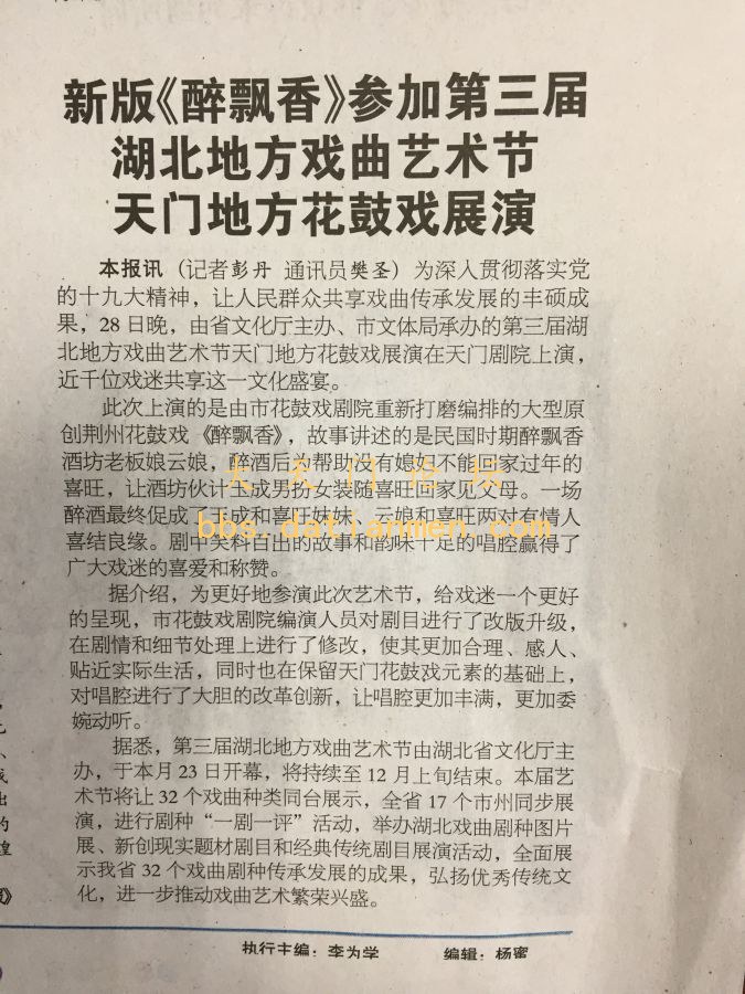 新版《醉飘香》28日晚在天门剧院上演