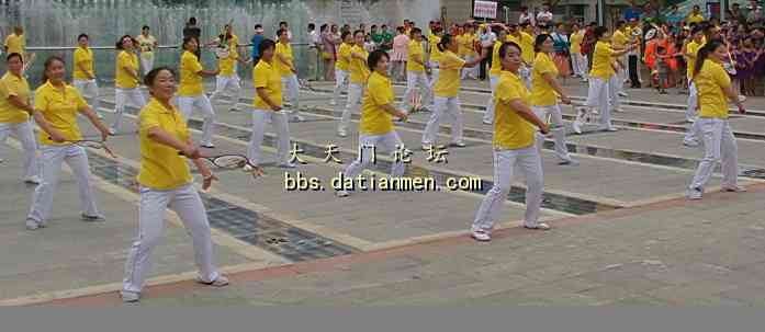 全民健身日各表演队__ 一展英姿.炫目耀眼 8月8日风和日丽,秋高气爽,由市体育局主办,天门CBD精彩大舞台承办的魅力新城,全民健身文化活动,上午7-8点在CBD精彩大舞台广场举行,7时整由副市长吴宇慧宣布开幕。参加活动的共有8支表演队:CBD太极拳队;CBD柔力球队;健身气功队;CBD健身体操队;自由风单车队;天艺舞蹈队;跆风武道队;红蕾艺术队。CBD的健身操方队由少年,青年,老年组成,在精彩大舞台掌门人陈淑芬的总指挥下,她们伴随着音乐的响起,踏着欢快的乐曲,身着亮丽的服装,迎着8月的朝霞列队步入广场中心。全体健身操 队的队员们用他们欢快的动作在这里展现健康的骄傲,飒爽的英姿在这里跳跃生命的韵律,激情的青春在这里阐释美好年华。整个广场音符强烈、各表演队舞姿矫健、动作激情飞扬、精神意气风发,精彩的表演迎来了阵阵掌声,观众热情高涨。大舞台的口号是:热爱生活,崇尚健康!精彩大舞台,有梦你就来! 请欣赏一组美图
