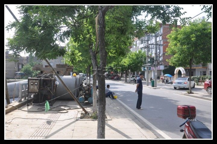 后壕是连接天门东西湖的一条小河,前壕是文学泉路前边的一个小湖,两个水系是各自独立的。现在市政府启动“引汉江水来循环东西湖工程”后,这两个原来不相干的水系现在也要加入大团队了。昨天我在文学泉路看到,在市人事局前面,工人们正在施工,准备将直径一米多的涵管在地下穿过,与后壕相连。