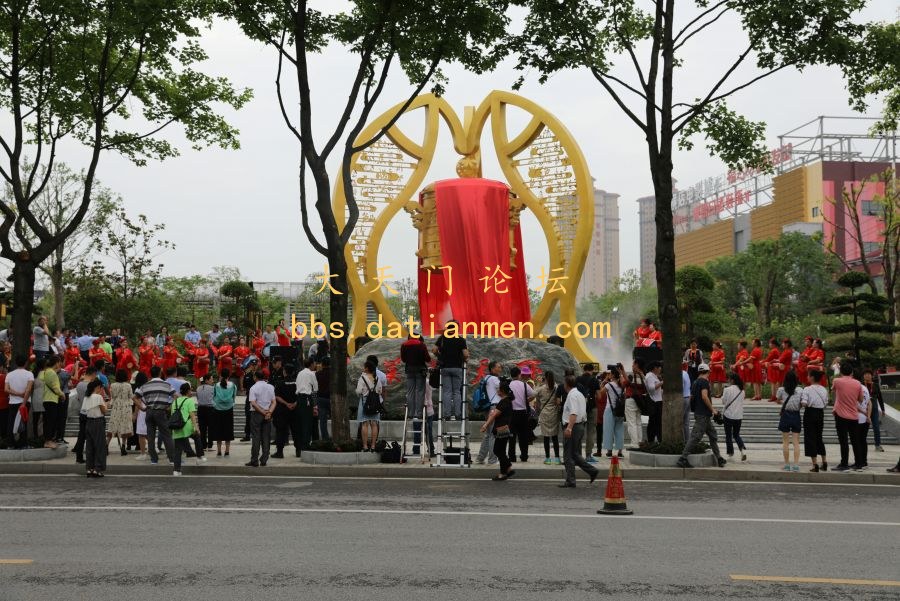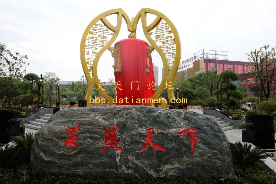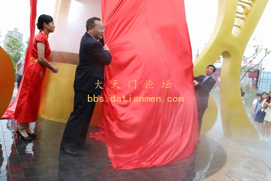 今天早晨“菜蒸天下”小游园一片欢乐景象,天门老年大学的学员们打着腰鼓,舞着狮子。八点半钟,市委市政府领导陪同中国烹饪协会、省政府有关部门领导和参加蒸菜技能大赛的全国各地的嘉宾一行,来到小游园。市委书记吴锦为“菜蒸天下”主题铜铸雕塑揭幕。