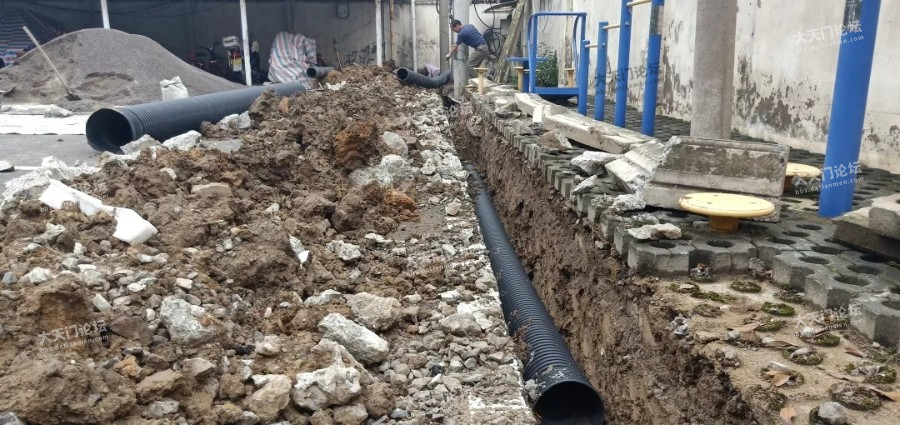 ,施工人员正在铺设污水管网 ,该工程的实施标志着陆羽大道沿线企业事业单位雨污分流管网改造正式启动 。