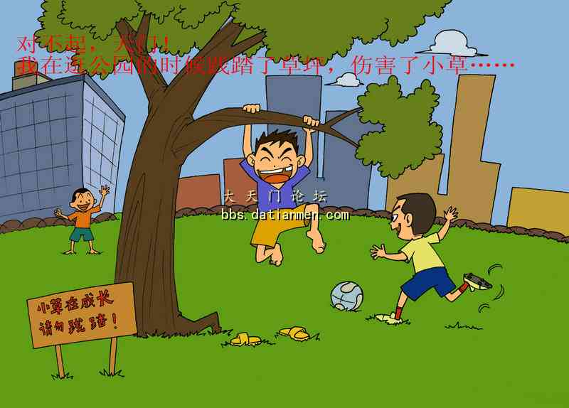 对不起,天门!我在逛公园的时候践踏了草坪,伤害了小草……