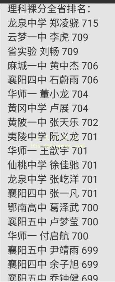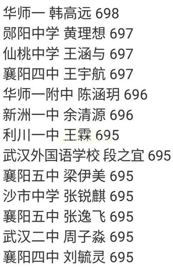 骄傲!天门籍学霸韩高远:全省理科排名20