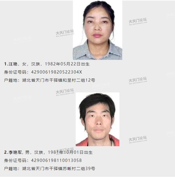 户籍地:湖北省天门市干驿镇汪河村六组47号