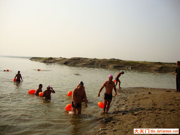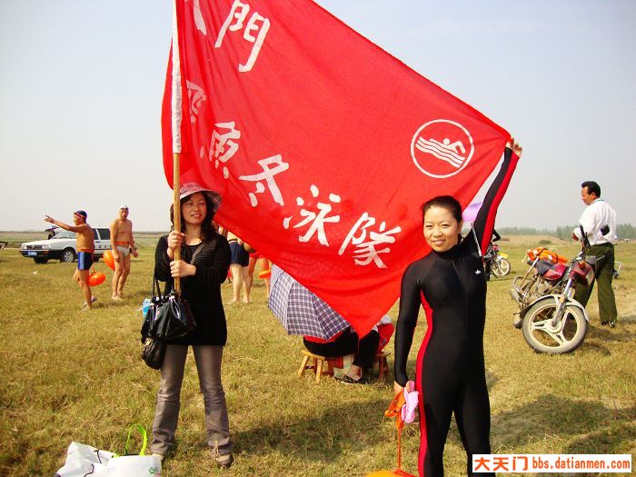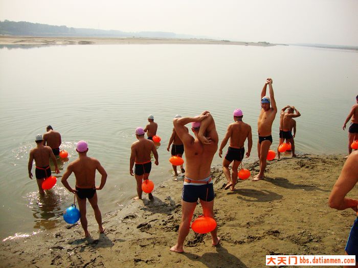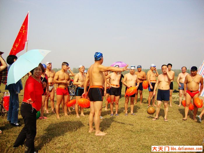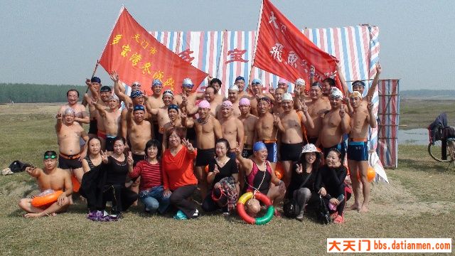冬泳联谊,不分地区,和谐相处,增进友谊。