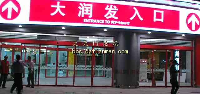 随着世贸的建成,大润发进住天门后,市民们盼望已久的大润发终于要开业, 大润发地处钟惺大道与接官路交汇处,地理位置独特,她不尽高楼耸立, 而且夜景亮化工程提升了天门的档次, 站在高处放眼望处,高楼夜景引入眼帘,感叹城市如此美丽壮观。还没到开业就吸引了不少市民前来观光,休闲与娱乐,每到天夜来跳交谊舞与广场舞的人员特火爆!
