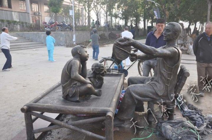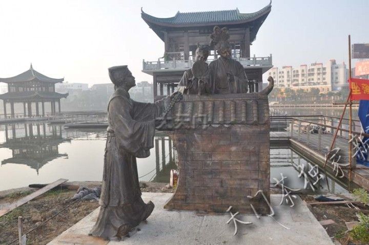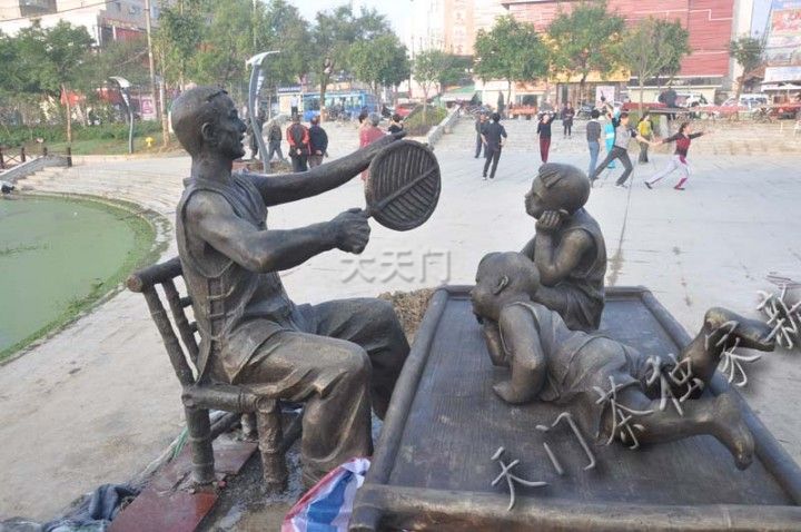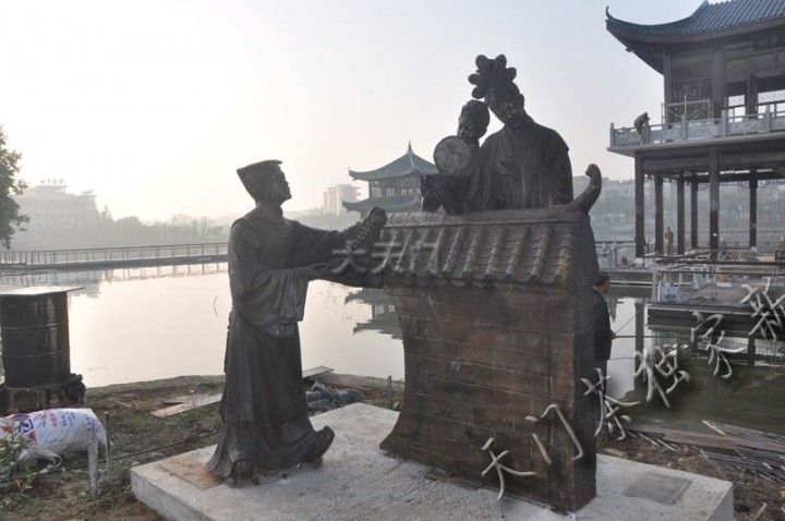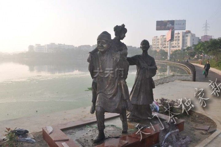 天门东湖点睛之作,天门风俗雕塑昨天已经全部安装到们,今天在东湖看到,工人们正在对雕塑座基进行加固。本次安装到们的雕塑有:蚌壳精、北门酒、背媳妇、采莲船、吹糖人、花墙会、纳 凉、三棒鼓、抬花轿、贴锅盔、推 磨、蒸 菜、水车、讲故事等十四个。虽然还没完全峻工,但有很多人观看,因为讲的是本地风俗,大家一看便知意思,所以大家看后非常开心。