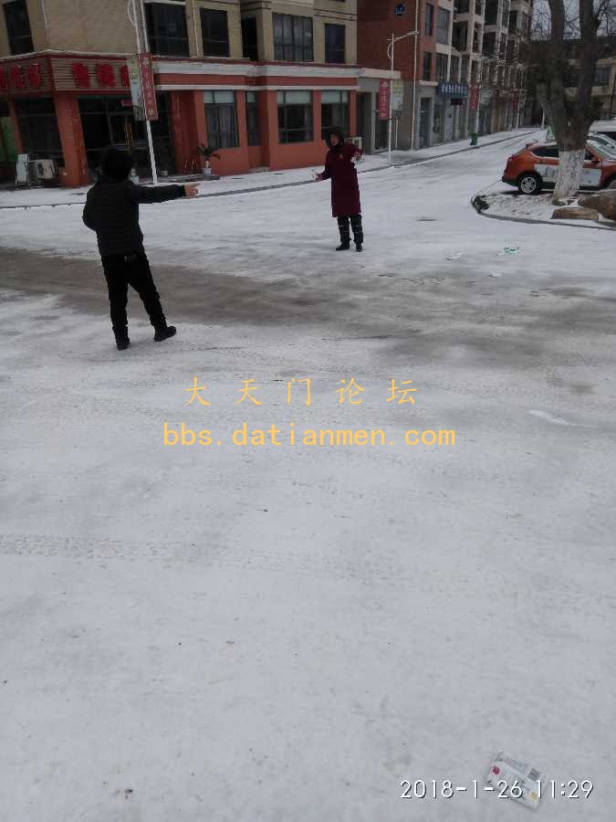 一大早已经发生好几起老人滑倒摔伤滴事故,政府正组织人员在相关重点结冰地段撒盐化冰