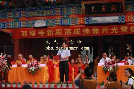 法雨遍洒三千界 佛光普照竟陵城——湖北省天门市西塔寺新殿落成佛像开光、二期工程奠基暨祈福消灾法会 金秋时节,菊艳桂香;覆釜洲畔,彩旗飘扬。9月28日上午,天门市西塔寺隆重举行天王殿、地藏殿、观音殿及陆羽殿落成、佛像开光典礼和二期工程奠基暨祈福消灾大法会。省民族宗教事务委员会、省佛教协会、省内外诸山长老、高僧大德、政界、文化界、商界等各界嘉宾、天门市相关部门领导及广大信众共同出席了此次活动。本次活动由省佛教协会常务副会长、武汉市宝通寺方丈隆醒大和尚主持。开光仪式在嘹亮的国歌声中开始,会上,宣读了台湾净光学会会长净光法师发来贺信以及台湾中华东方茶文化艺术学会王淑娟理事长发来贺电。天门市委常委、统战部长刘艺新致欢迎辞,台湾佛光山心定大和尚在仪式上作重要开示,中国佛教协会副会长、省佛教协会会长正慈大和尚、湖北省民族宗教委员会熊华启副主任,荆州市民族宗教局负责人在法会上作了热情洋溢的讲话。各级领导及诸山长老、高僧大德对西塔寺的发展寄予了深厚的期望,希望西塔寺秉承佛陀教诲,遵从宗教法规政策,本着爱国爱教的原则,齐心协力,把西塔寺建设好,护持好,管理好,将“和谐寺院”的荣誉发扬光大,为传播佛教文化、推动地方经济发展、构建和谐社会做出应有的贡献。西塔寺始建于东汉,为历代高僧驻锡。在唐开元21年西塔寺住持智积禅师收养了弃婴,这就是后来写出史上第一部茶学专著《茶经》而享誉世界的茶圣陆羽。西塔寺历史悠久,饱经风霜。如今新殿落成,后期工程奠基,宝镜重光,寺院焕然一新,成为闻名遐迩的佛教道场和人文景观。西塔寺的兴盛,必将对天门乃至湖北省佛教事业的发展起到积极的推动作用。在西塔寺住持心平法师致答谢辞之后,省市领导及高僧为西塔寺后期工程铲土奠基。“第一铲开工顺利,国泰民安;第二铲动土平安,繁荣地方;第三铲工程顺利,圆满吉祥”。随后,举行了庄严的佛教开光洒净法事活动。法事过程中,高僧共同诵经祈福,法师拈香、说法,杨枝甘露,遍洒道场。 “用巾拂尘”,以佛法拂去尘垢;“举镜照空”,以佛光照亮无明;“朱笔点眼”,以佛眼点醒智慧。从而化世导俗,去除烦恼,建设和谐。(文字:妙乞 )