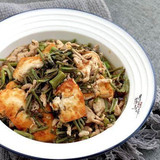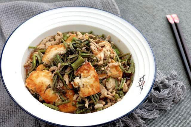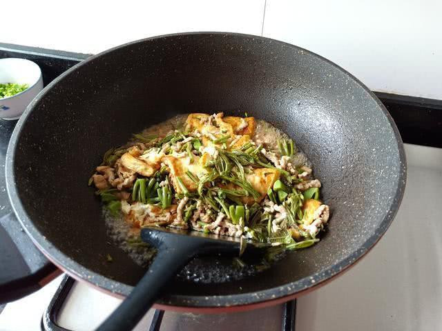 豆腐煎一煎,肉丝炒一炒,加入香椿拌一拌,豆腐嫩,肉丝鲜,香椿香,味道好鲜美啊!