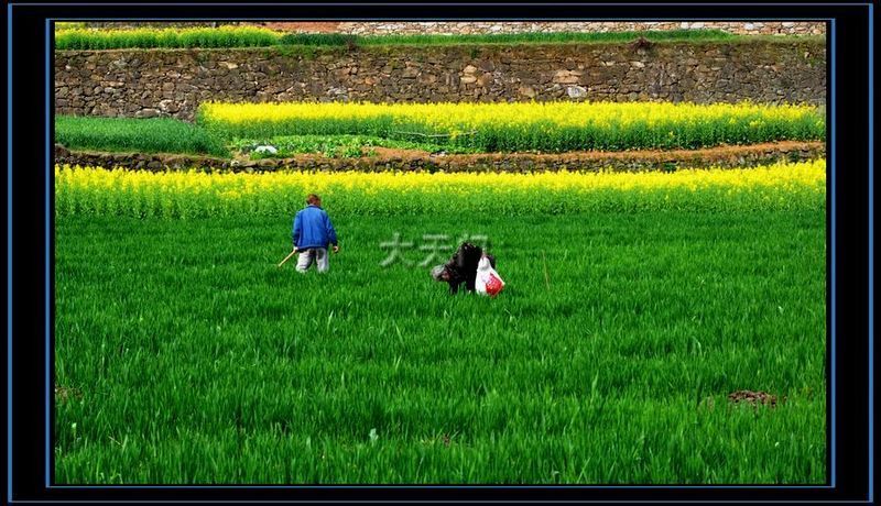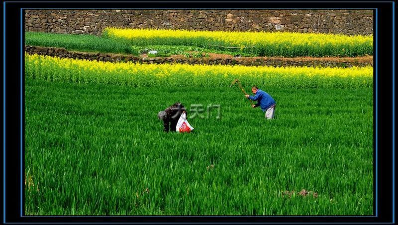 山高、麦绿、菜花黄,还有那辛勤劳作的老爹娘......(偷.拍的正在田间劳作的一对老夫妇)