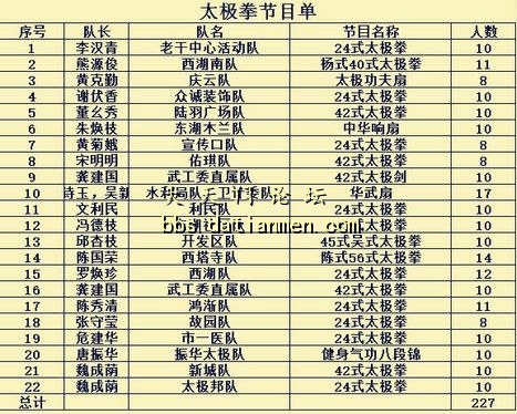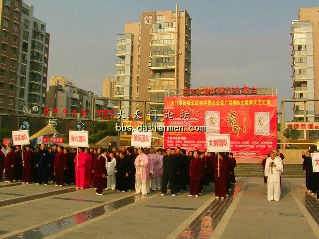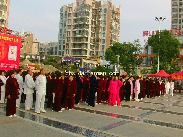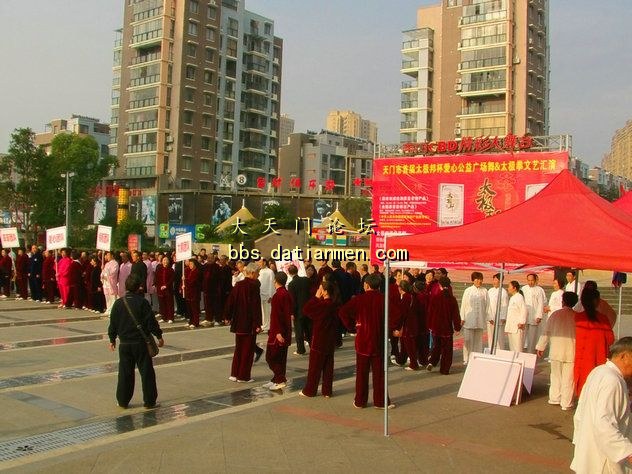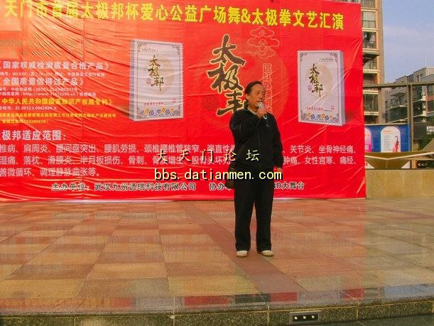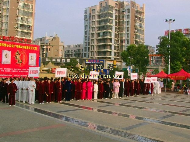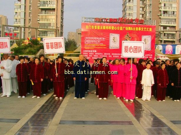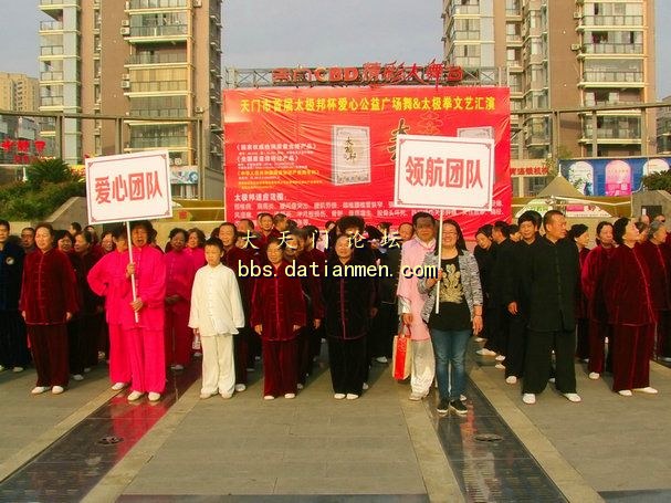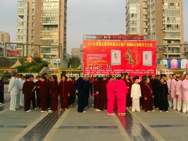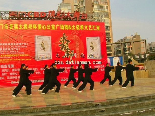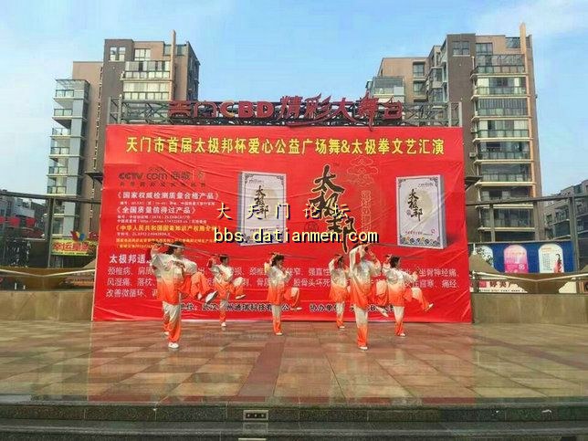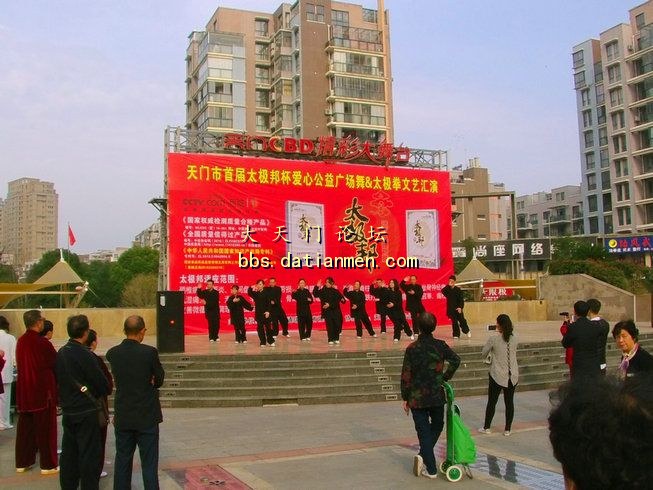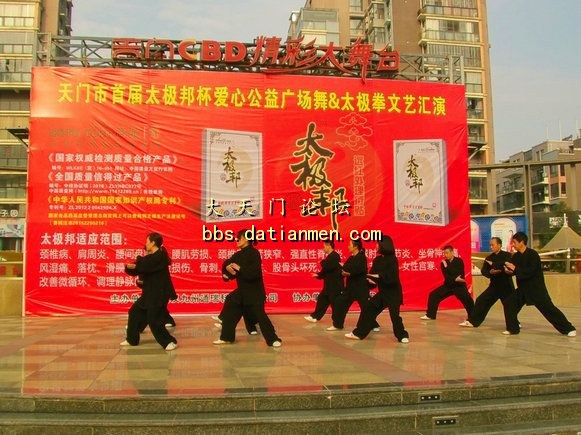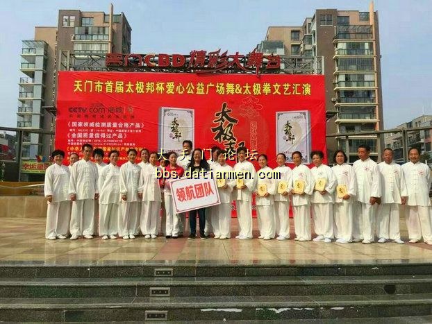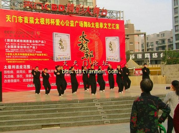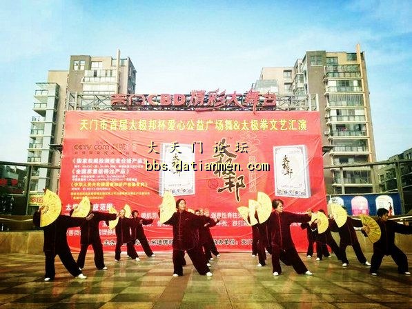 金秋时节 景色宜人。 天门市CBD首届“太极邦杯” 爱心公益太极拳类汇演展示,于2016年11月6日上午,在天门CBD精彩大舞台举行! 8:30分, 在身穿亮丽台服的精彩大舞台实力派女主持人邓大顺开场白后,首先由天门市体协金主任致辞并宣布太极拳汇演展示开始。 来自新城CBD代表队,开发区代表队,宣传口代表队等22支代表队,共227人参与了友好展示,各式太极精英齐聚新城.众多八仙过海一展雄姿。 此次活动是武汉九州通瑞科技有限公司,为各SQ的太极拳爱好者搭建了一个学习与交流及展示拳艺的平台。为提高中老年人间的相互认识与交流及提高太极拳剑的竞技水平和综合素质举办的。她们将以拳结良友,拳剑生情谊;增强身体素质,提高生命质。为健康加油,为生命喝彩。 中午12:0时“太极邦杯” 展示 汇演华丽落幕! 据主办主负责人陈琼介绍:现已组建了天门太极邦广场舞群与天门太极邦太极拳群;展示活动结束后,队员们相互合影留念与交换联系方式方便联系;共同期待下一次“再相聚”。