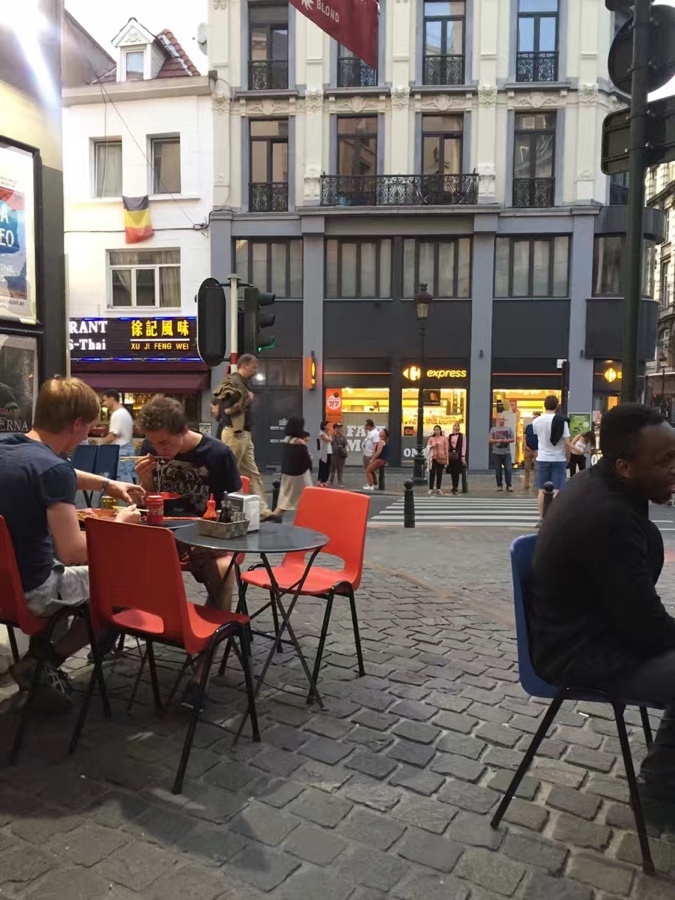 图八我们和老外吃面条,没想到布鲁塞尔也有美味的面条