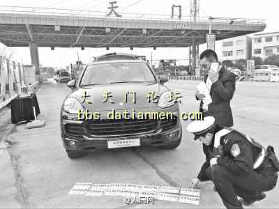 当天下午4点左右,省高警京山大队民警在随岳高速公路天门站口执勤时,发现一辆未悬挂号牌的卡宴越野车准备出站,民警上前对其检查,发现该车驾驶台上放着两张广东籍的临时号牌,号牌背面只有一个印章,没有车辆信息和有效期。