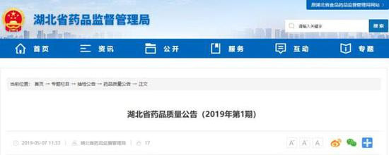 湖北省药品质量公告(2019年第1期)