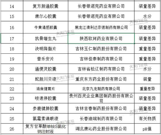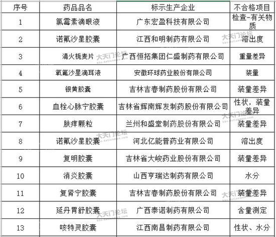 附件:药品抽检不符合标准规定药品名单