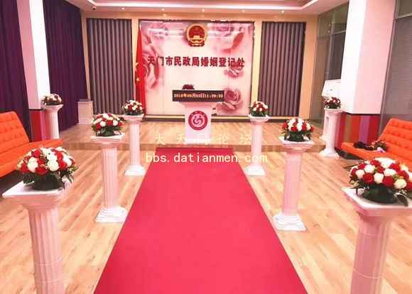 天门民政局婚姻登记处,是不是特别高大上?还有免费颁证仪式!