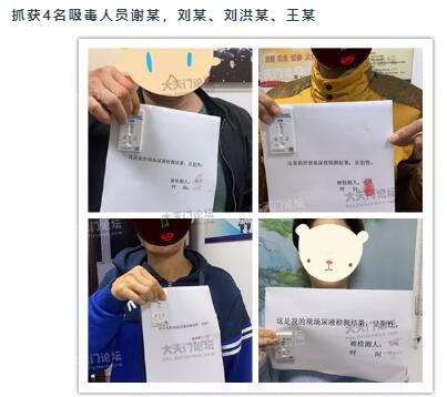 抓获4名吸毒人员谢某,刘某、刘洪某、王某