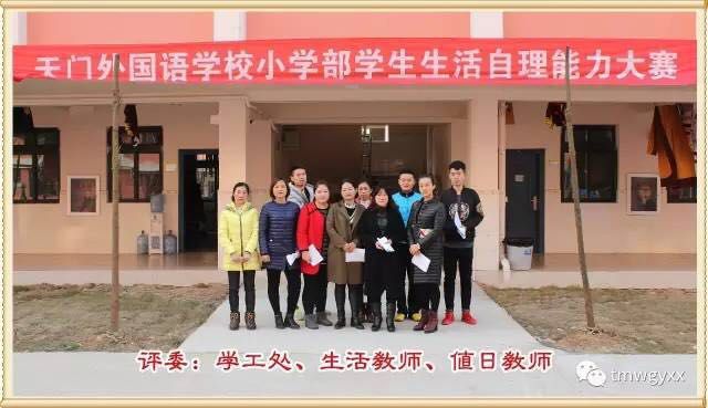 自理自立 绽放美丽——天门外国语学校小学部自理生活能力大比拼 为了促进学生在生活自理方面养成良好的习惯,提高学生的动手能力,进一步加强对学生自主、自立、自信、自强的生活教育,让学生得到全面、和谐的发展,天门外国语学校小学部于2016年12月10日上午九点,在学生寝室楼分年级举行了别开生面、激烈精彩的生活自理能力比赛。