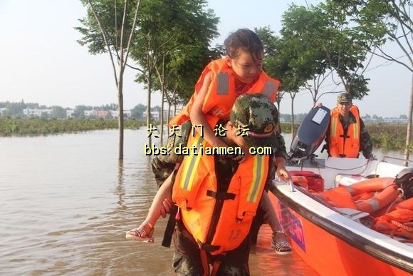 武汉某舟桥旅官兵己从武汉出发来天门转移黄潭渔薪受困群众了,来了400名官兵,带的冲锋舟。