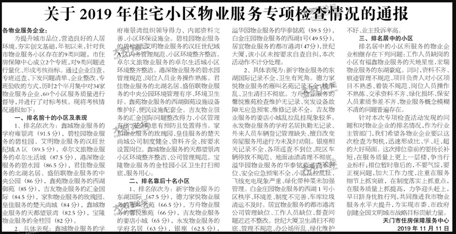 天门物业服务检查情况