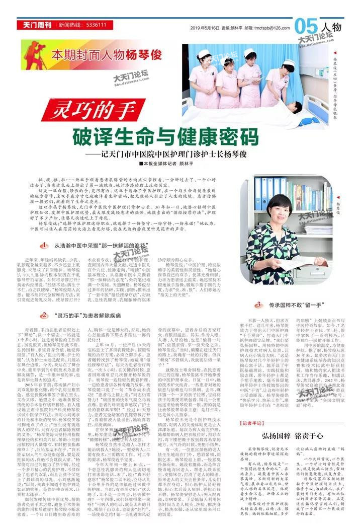 杨琴俊累而不辍地耕耘于中医护理这片沃土,铭责于心,治病救人。在广袤的天门大地,有如此仁心的医者不计其数。正是这些铭记誓言的人们,铸成了一个国家一个民族前行的基石。
