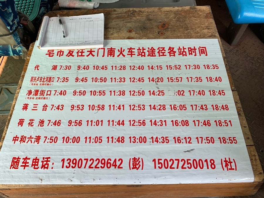 虽然这趟车写的到胡市皂市但是好像是目前只跑到代湖农场,然后司机再安排小车送到胡市皂市吧,前几天回去专门问了师傅好像说收班挺早的,顺便吐槽一下这个车好像也不便宜,最重要的是时间不怎么好把握,火车32加上12也差不多赶上直接坐汽车到汉口的大巴了,时间上全程50分钟左右,马上十一了,希望对准备回家过节的友友们有点帮助。