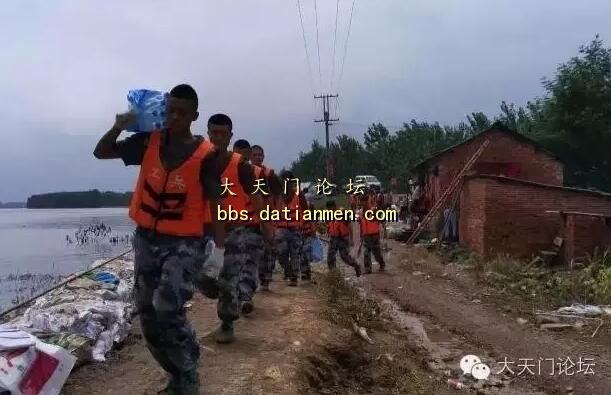 官兵们奋勇抢险的场景,深深感动着附近胡市镇张大村的群众,听说官兵们没有吃晚饭,村民们踏着夜色赶到堤上,为他们送来饭菜和西瓜。