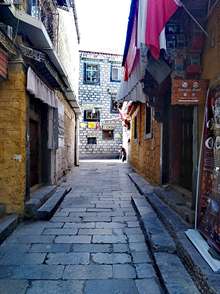 在拉萨市八廓古城的小巷中,一个乞讨的老太婆……