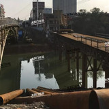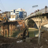 施工现场负责人介绍,目前正在进行钢栈桥的建设,与钢栈桥同步建设的有紧贴大桥桥身的三座支栈桥,还要在桥拱下搭建八座钢架,将整个桥身托起,达到安全施工要求后,才能正式开始切割拆除。