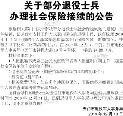 关于部分退役士兵办理社会保险接续的公告