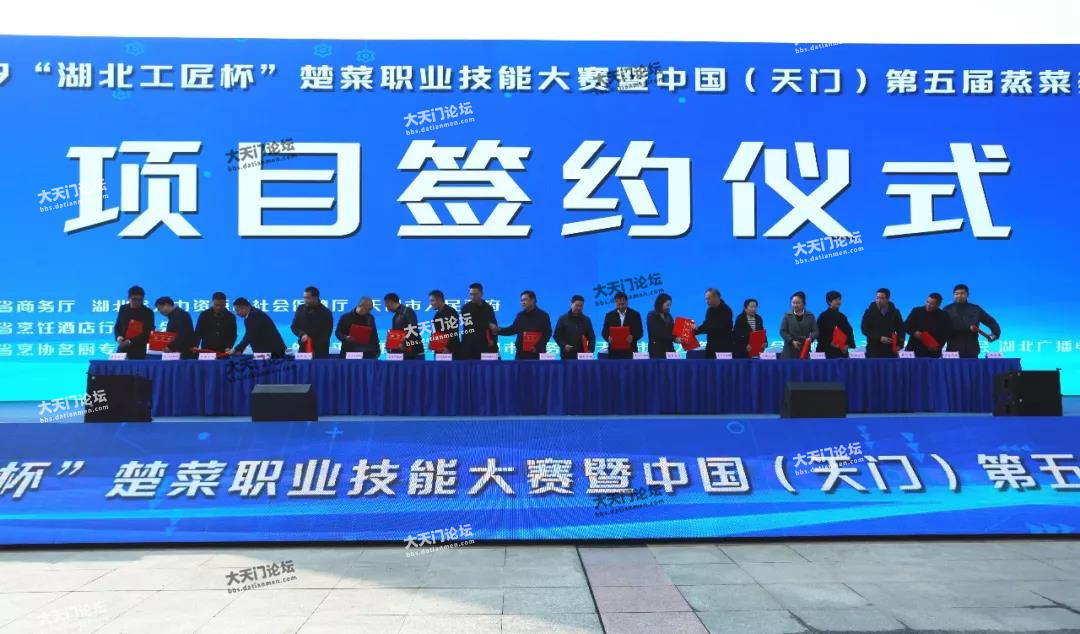12月19日,在2019“湖北工匠杯”楚菜职业技能大赛暨中国(天门)第五届蒸菜美食文化节开幕式上,一批招商项目签约,签约30个项目,协议总投资额达53.23亿元,涉及机械制造、电子信息类、新能源新材料、文化旅游、现代服务业、医药化工、食品加工等领域。来源天门日报