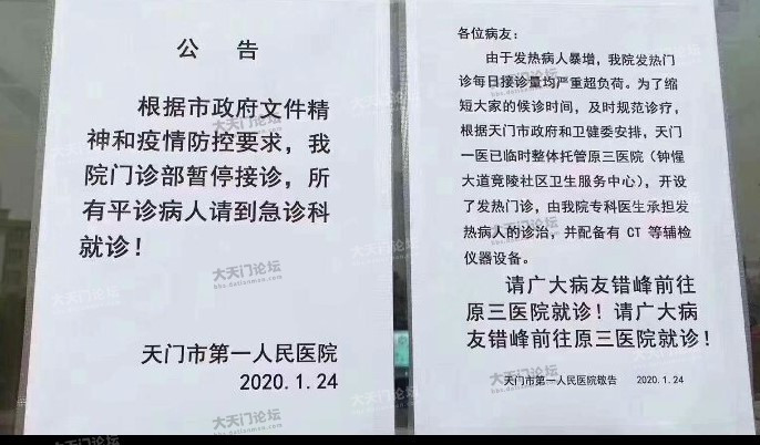 天门市新型冠状病毒感染的肺炎防控指挥部郑重提示:自2020年1月24日起,除应急指挥、公安、救护、石油运输、水、电、气、通信抢修、垃圾清运、医疗物质运输、商超生活物质运输、农产品物流运输、殡葬、消防、金融押运等车辆外,其余车辆一律禁止通行。