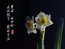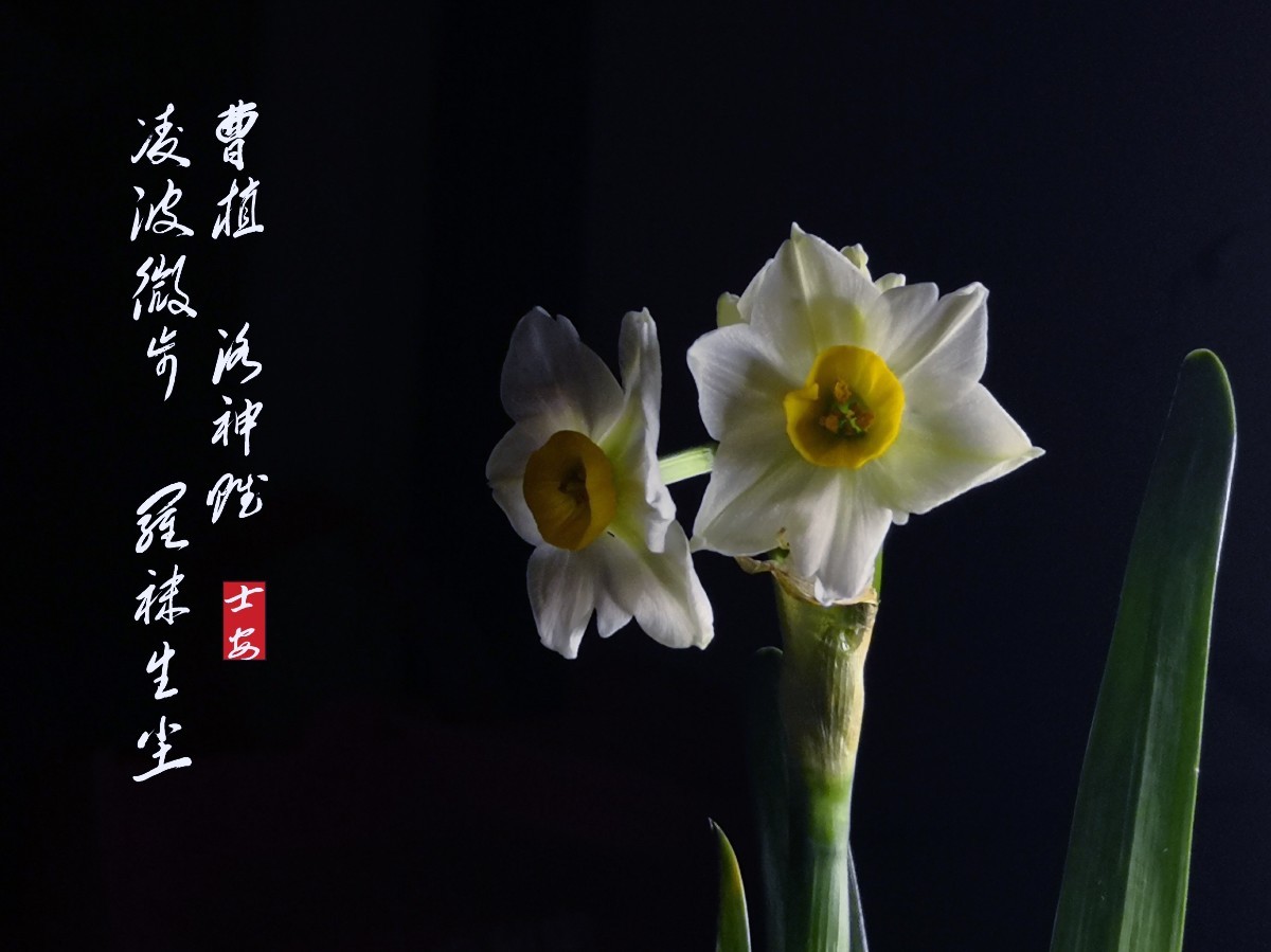 各位网友继续宅家!闲来无事,用华为mate10手机拍了水仙花,用单灯照明,后又加了歌颂水仙花的诗。