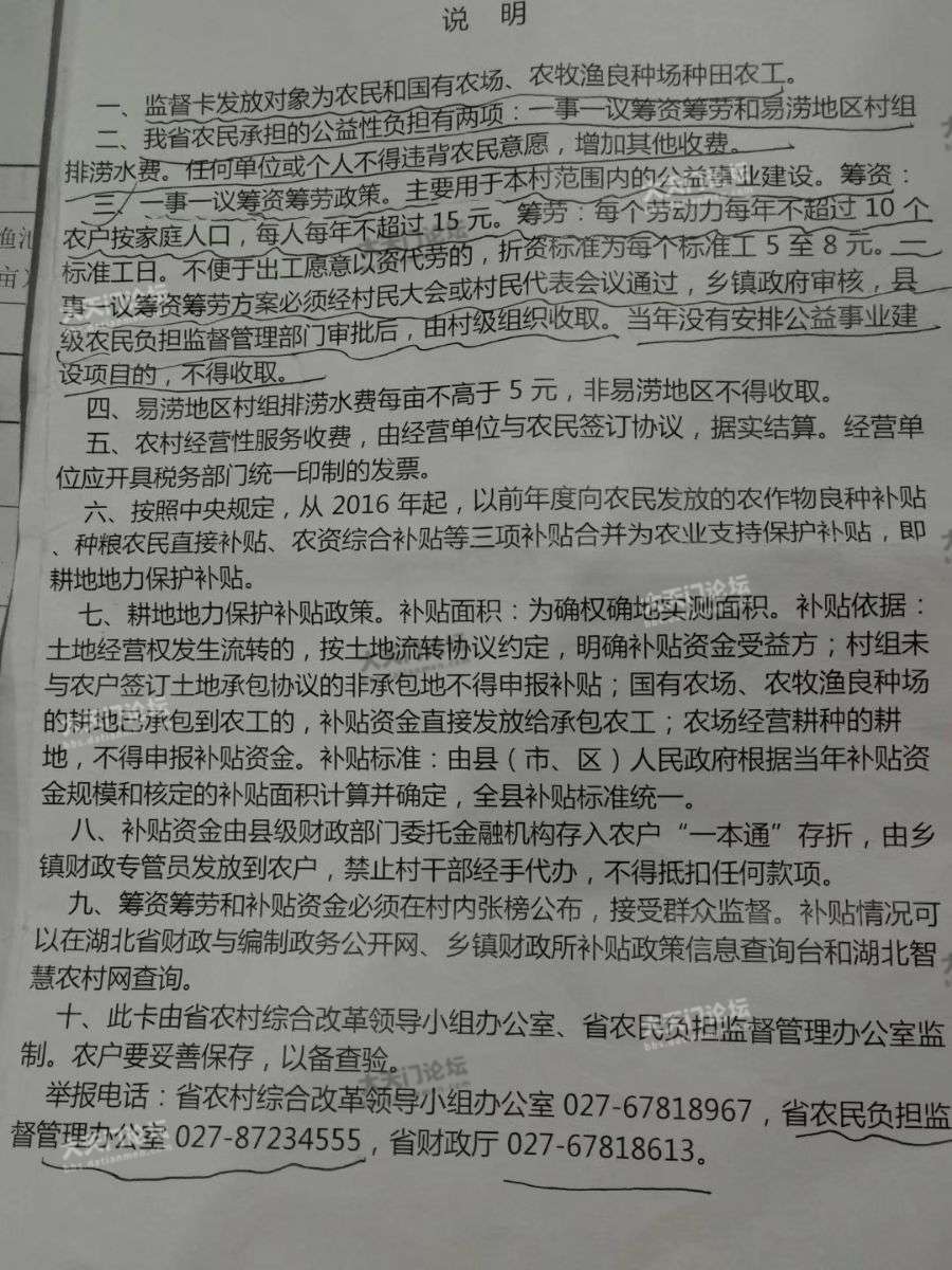 坐村马湾镇邹湾村一组,一亩十元,财政局说是村里收的与他们不相关,村里人说收了交上面。打省里电话02767818613省里说没田费、一事一议用于本村范围内公益项目建设,必须开会村民同意,政府审批、按国家订的条例办,若当年没有建设公益项目、不得收取任何费用 我说省里都说没田费,做公益项目才收,收钱的说不是田费,也不是一事一议,就说国家给的粮补钱一亩田就要收你十元。