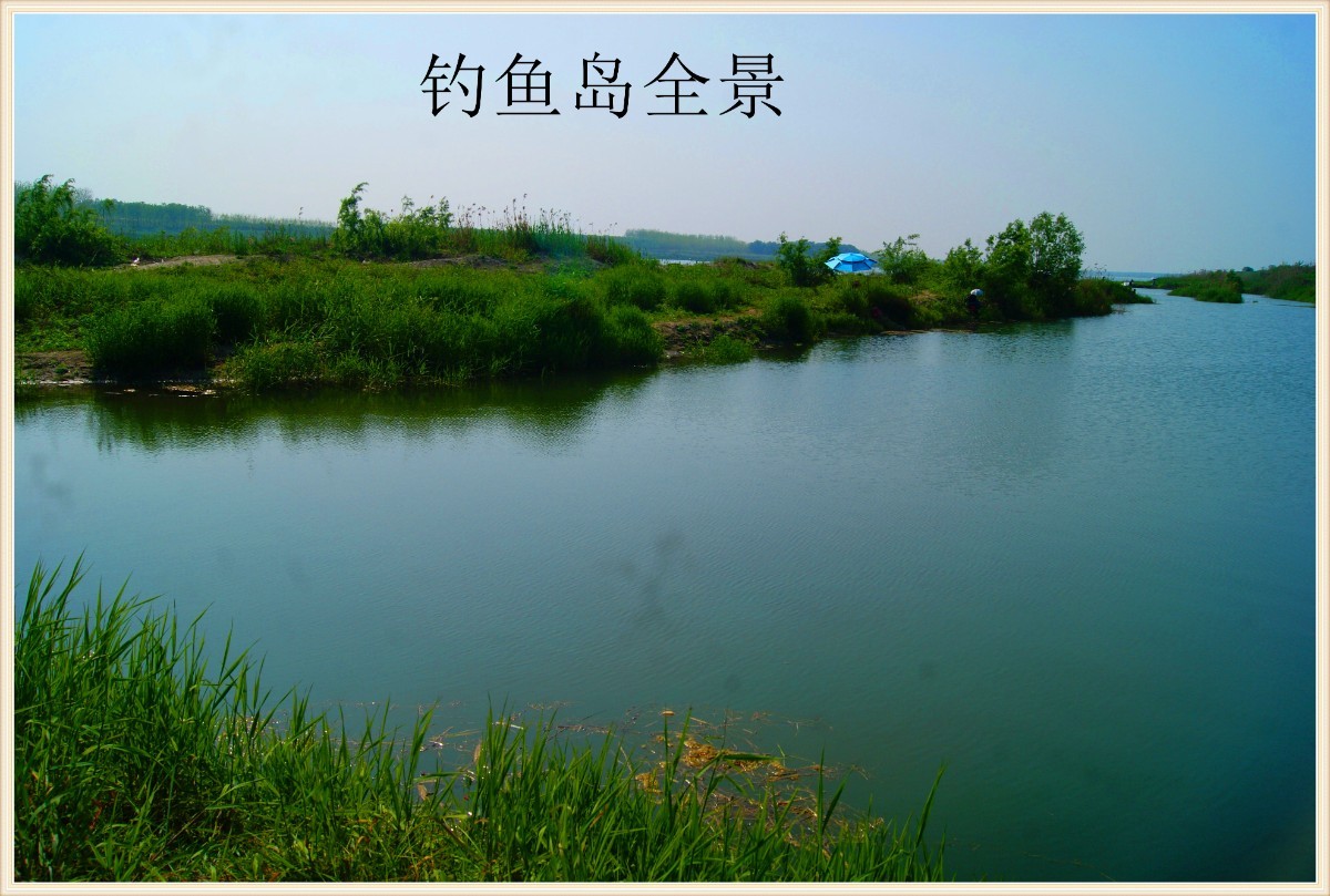 这道拦水埂在不涨大水时,一般不会被淹没,所以,通过土埂,就顺利到达了目的地---钓鱼岛。钓鱼岛四周环水,靠江边一面,因为拦水埂,形成了一汪平静的水面,江水澄碧,水草依依,钓客们大多喜欢在这一面垂钓。