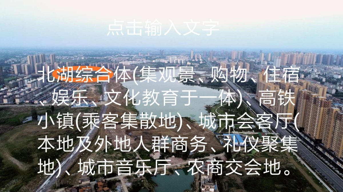 北湖随着教育产业布局,高铁新建,未来中心新城可期。如何布局?5-20年内,北湖区域面积将扩大5倍,人口达到20万,这里总体规划为宜居新城,需要建立综合体(如图)。环北大道以北可规划现代生态农业,迎合城市农业、生态旅游、养生养老大健康等新业态需要。