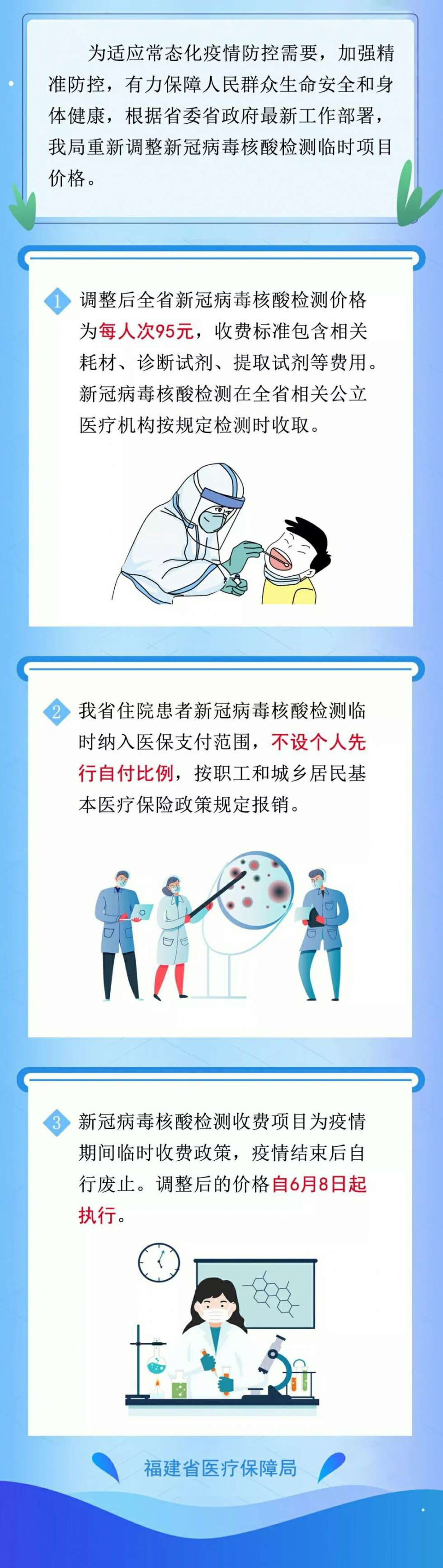 福建6月8日起,新冠肺炎核酸检测费用下调到95元