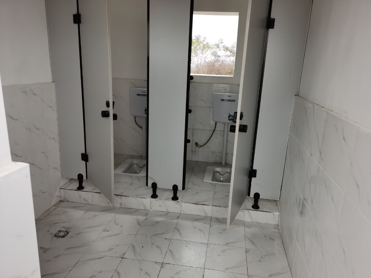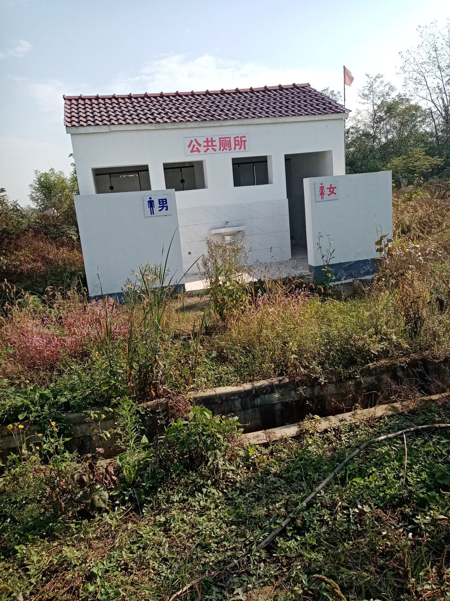 看到一个公共厕所,想进去方便一下,冒着被蛇咬的危险(不知道蛇在这个季节是不是已经冬眠了),鼓足勇气往里走!刚一探头要进去,不好,整个头被蜘蛛网缠住了,倒霉!我真想骂这该死的蜘蛛一句!我不知道我是不是第一个光顾这里的人,里面好干净耶!完全没有那种公共场所的脏和臭,只是墙壁和地面的瓷砖缝隙长出很多杂草!我出来了,舒了一口气,伸手去拧那个洗手盆的水龙头,咦!怎么一滴水都没有呀!好无奈,真的好想踢这该死的水龙头一脚。唉!只能无奈地摇摇头。我抬头看看天空,有一面泛白的旗子正在那儿飘扬,长久的风吹雨打,它已经失去了从前的鲜艳!