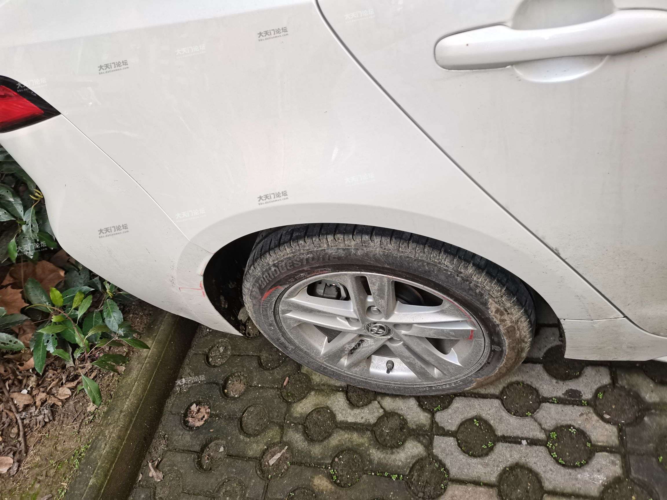 :白色这辆车是我的车,我在左车道正常走的啊?(看了行车记录仪,也没有偏离车道)是旁边那辆红色老头乐车头往左捌碰到我右后轮了。
